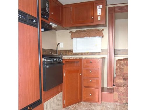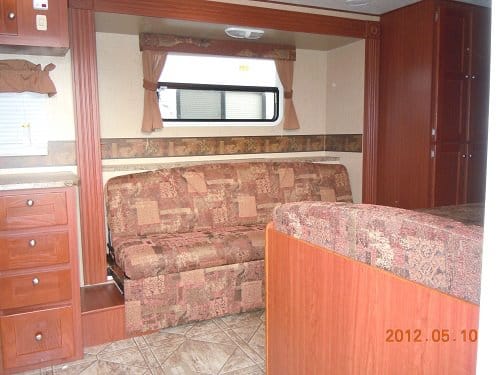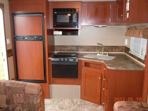 This 28’ Travel Trailer Rental is equipped with a kitchen, bathroom, and comfortable living space. Contact us for more information and reserve your next adventure today.